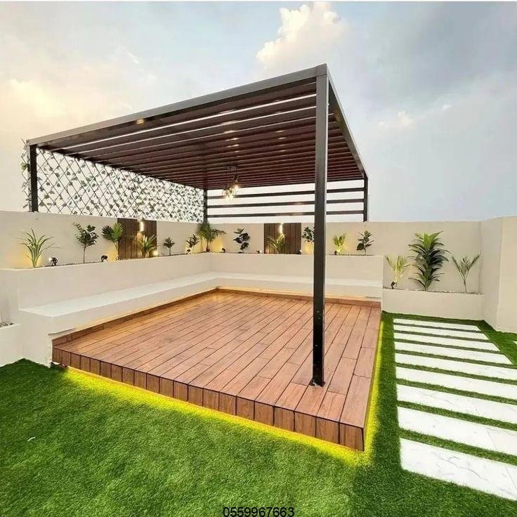 تتميز جلسات حدائق خارجية الرياض بتصاميم عملية تتحمل الظروف المناخية القاسية. بالإضافة إلى ذلك، يتم تنفيذها بخامات مقاومة للشمس والرطوبة مثل الخشب المعالج والحديد المطلي. لذلك، تعتبر هذه الجلسات خيارًا مثاليًا للمنازل والاستراحات.